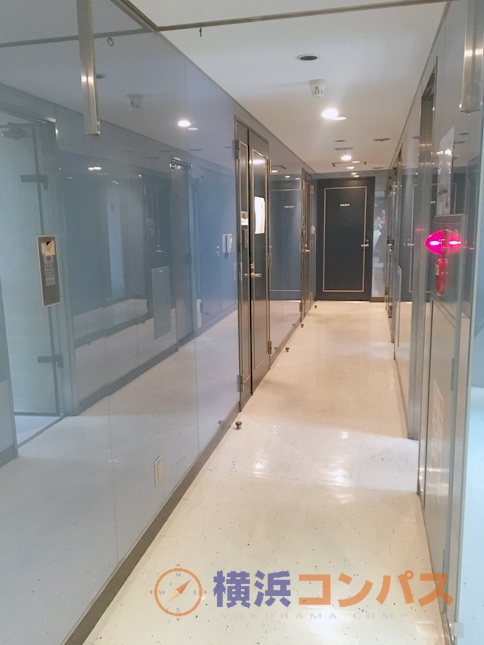 全面ハーフミラーの共用廊下